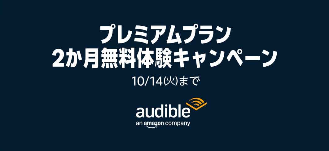 期間中、Audible(オーディブル)に登録すると2か月無料で体験できます。