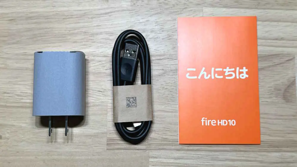充電アダプタは 9W、充電ケーブルはUSB-A to USB-Cとなっています。