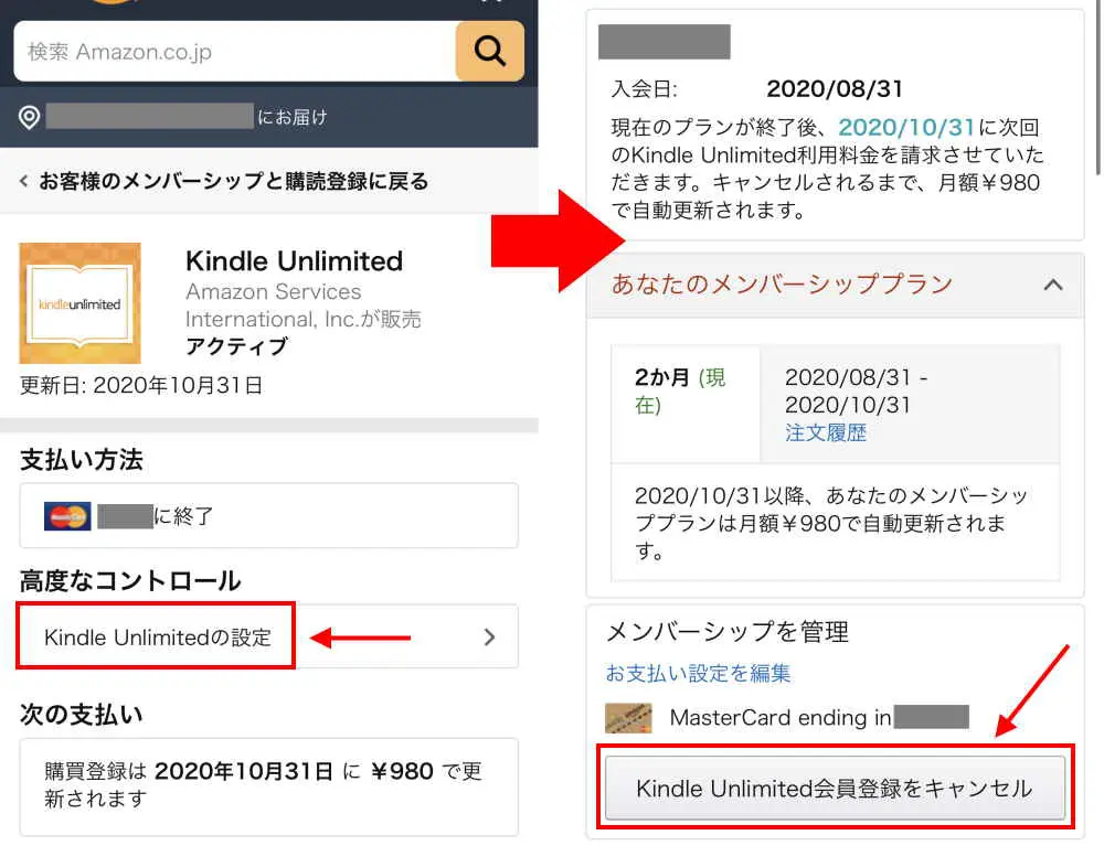 • 「Kindle Unlimitedの設定」から会員登録をキャンセルする