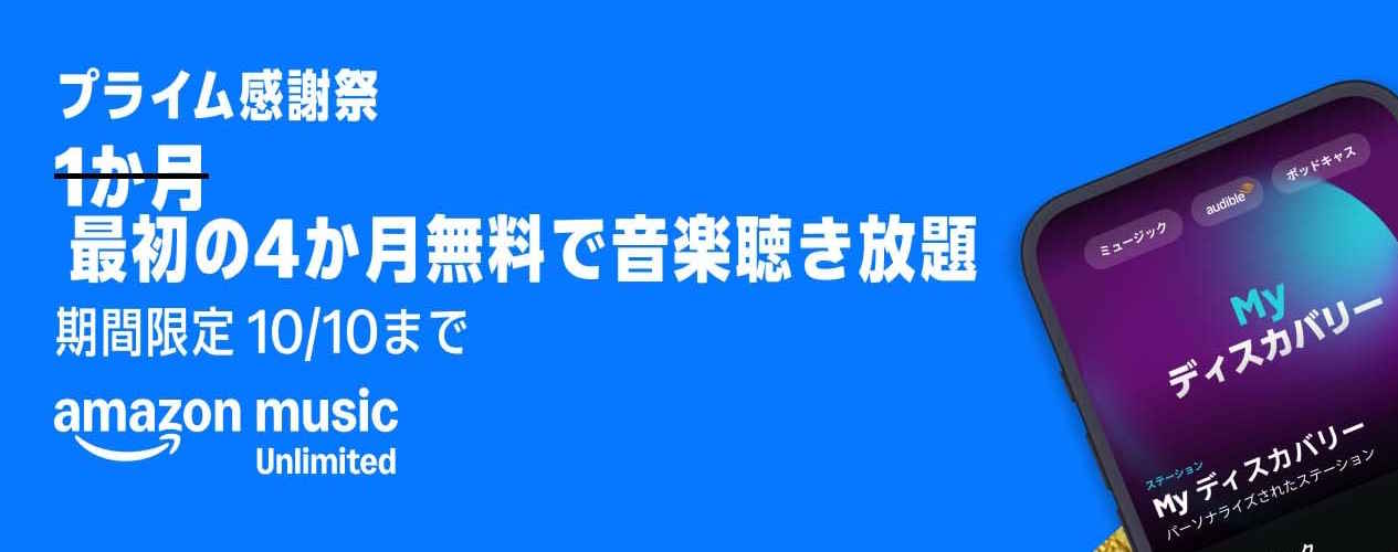【10/15まで】Music Unlimited 4か月無料プライム感謝祭キャンペーン