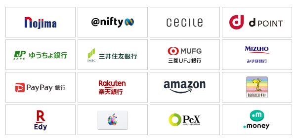 500円相当から交換できできるので、初心者でも比較的簡単にポイント交換することができます。