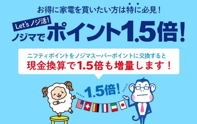 - ノジマスーパーポイントや@nifty使用権への交換が1.5倍増量