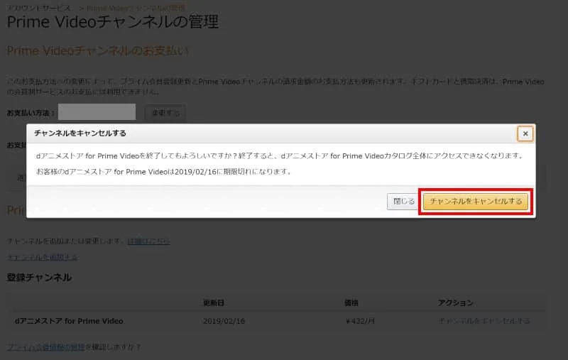 チャンネルを解約してもプライム会員は解約されない