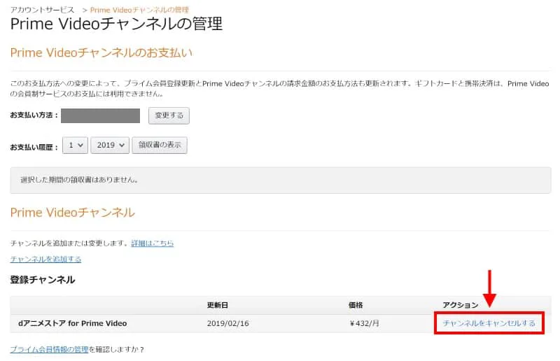これでチャンネルの解約は完了です。