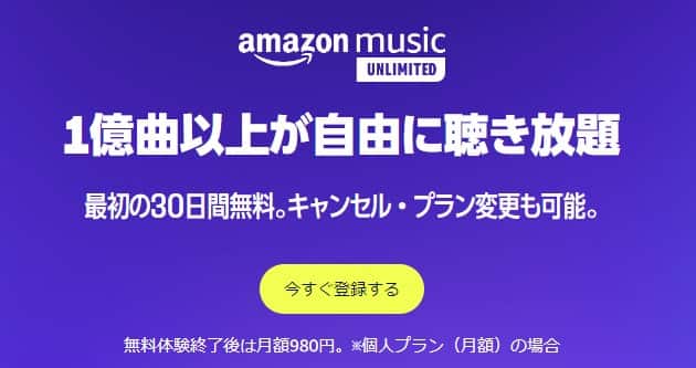 期間中、Music unlimitedの個人プラン(月額)を30日間無料で利用できます。